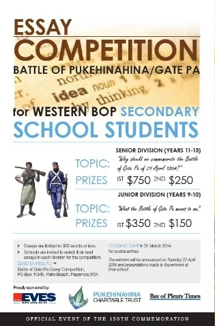 Tauranga, New Zealand (Tuesday 4 March 2014) - Western Bay of Plenty secondary school students will be competing for $1,500 worth of prizes in the Battle of Gate Pa Essay Competition which launches this week.
