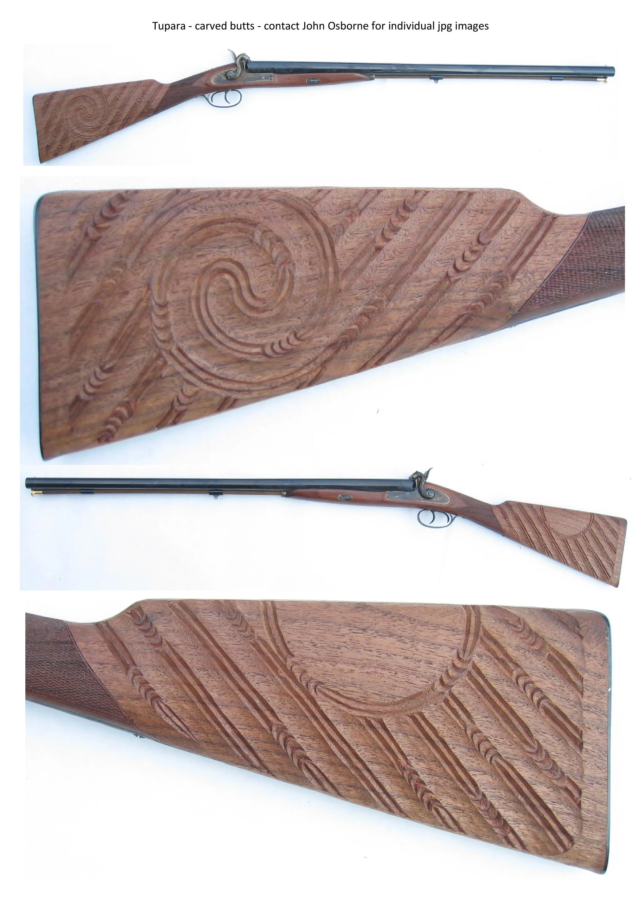 Subsequently (as was common at the time of use by Māori) the walnut butts have been carved in tradition by Master Carver Whare Thompson and Master Carver Damien Kohu.